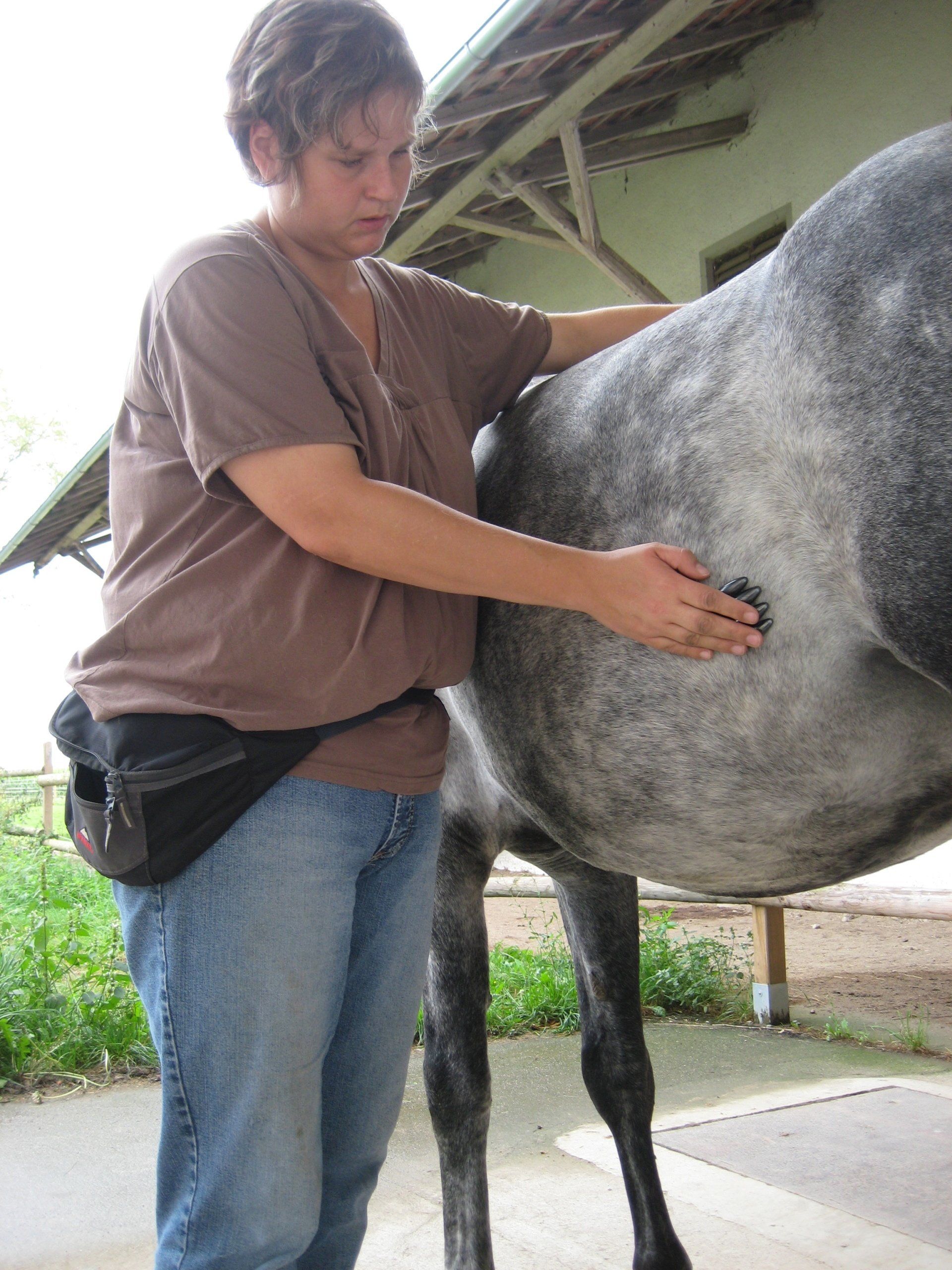 Die Pferdeosteopathie / Hundeosteopathie hat viele Gesichter. 90% davon sind so sanft, das man als Aussenstehender leider nicht viel sieht, außer das ich die Hände auf verschiedenen Stellen am Körper auflege oder minimal anschubse. Das sind dann nicht die spektakulären Fotos die man sich auf einer Homepage wünscht, aber es ist das was passiert. Öfter zeige ich meinen Patientenbesitzern am eigenen Laib was im Körper geschieht. Damit ist dann oft der Bann gelöst. ;-)